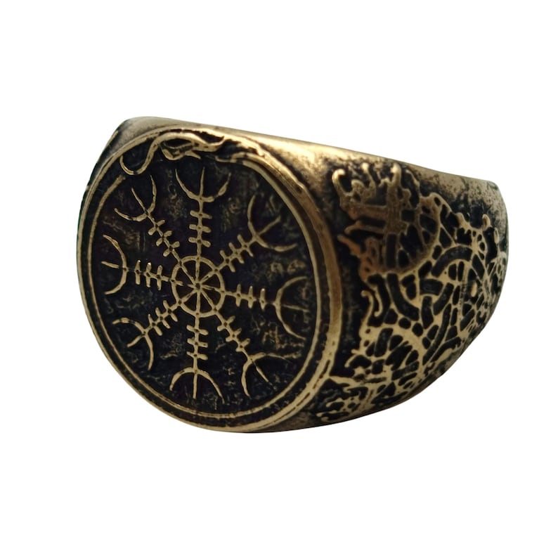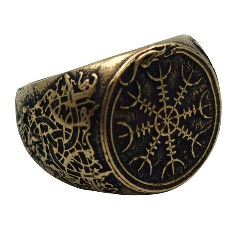 Der Helm der Ehrfurcht oder Aegishjalmur ist ein Runensymbol aus der nordischen Mythologie, das in der Poesie Edda erwähnt wird. Dieses Symbol befand sich auf dem Drachen Fafnir und verscheucht Feinde. Siegelringe werden auf Bestellung gefertigt, Sie können das Metall wählen – Bronze, Silberbronze oder Sterlingsilber. Dieser Ring passt zu Männern und Frauen, die nordischen, heidnischen oder Wikingerschmuck lieben.